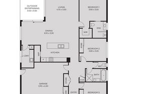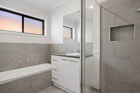 This modern three-bedroom home offers a functional layout designed for comfortable living. The main bedroom includes a walk-in robe and ensuite, while the remaining bedrooms feature built-in robes and ceiling fans, serviced by a central bathroom.
