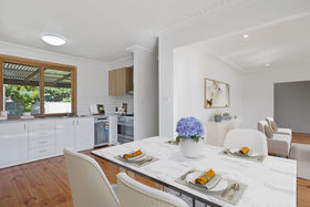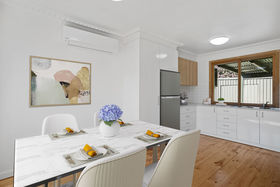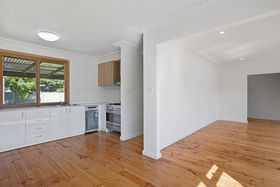This three-bedroom home has been thoughtfully refreshed and offers a light-filled interior with high ceilings and welcoming living spaces. Each bedroom includes a built-in robe and ceiling fan, while the spacious main bedroom also features a built-in desk.