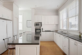 Upstairs, four spacious bedrooms, provide ample space for the family. The rear bedroom boasts a balcony which overlooks the glorious rear yard. The newly renovated bathroom is a luxurious retreat with a freestanding tub, walk-in shower, twin vanities, travertine tiles, heated floor and heated towel rail.Two additional powder rooms, one upstairs (newly renovated) and one downstairs, offer added convenience.