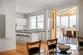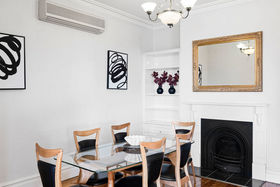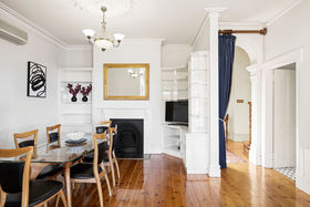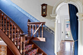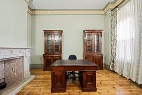 Beyond the striking red-brick facade, you'll find a formal lounge with a gas heater installed in the fireplace and a separate cosy living room/study, both featuring exquisite open fireplaces, soaring ceilings, ornate cornices, and gleaming timber floors.