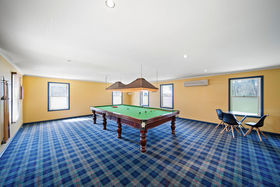 Outside, a basement provides abundant storage, and two cellars await your wine collection. Brick-paved paths lead through lush lawns and citrus trees to the rear-access garage. The double-storey red-brick structure includes ground-level parking for two cars and an upper-level games/entertainment room. This versatile space can also serve as a studio, home office, or guest suite with its own bathroom (including toilet) and kitchenette.