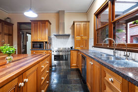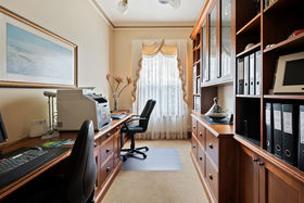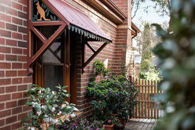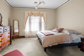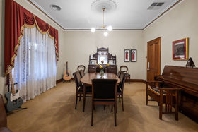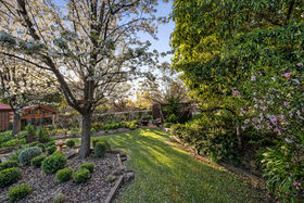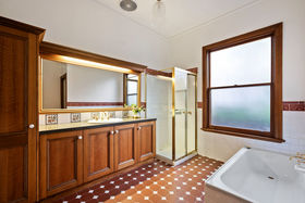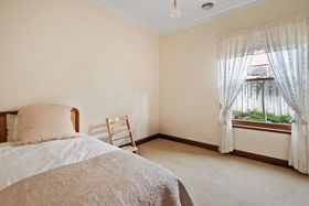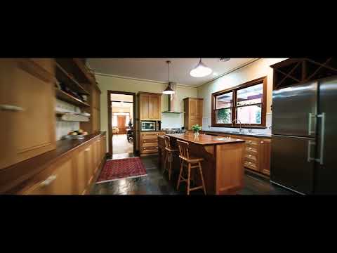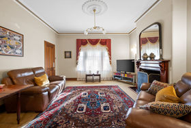 This quality-built home offers both formal & casual living areas, 3 spacious bedrooms, a dedicated study, & 2 stylish bathrooms. Front verandah with cedar windows leads to a classic entry & hallway with pressed-metal dado, high ceilings, & decorative cornices. Elegant formal lounge features a fireplace with a timber surround & adjoins the formal dining/music room. The main bedroom includes a WIR & renovated ensuite with a walk-in shower, bespoke timber vanity, & floor heating beneath tessellated tiles. The dedicated study offers built-in desks & a full-length wall unit.