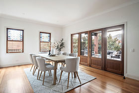 Inside, the 3.6-meter-high pressed metal ceilings contribute to the spacious and grand ambience, enhanced by stunning timber floors and fresh paintwork. Following a meticulous renovation and a two-storey extension, the home's expansive layout now includes five bedrooms, three bathrooms, and three living areas, perfectly catering to the needs of today's modern family.