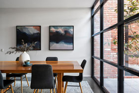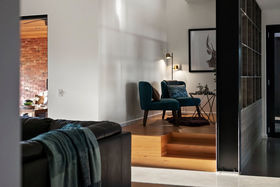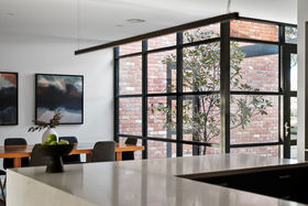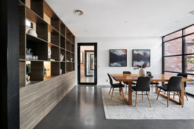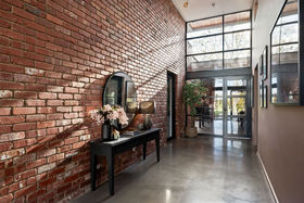 • Contemporary industrial style spanning almost 50 sqs blends raw, earthy, and rugged textures with modern aesthetics, successfully executed by the use of geometric shapes, a combination of recycled bricks & perforated metal cladding, 6m ceilings, burnished concrete floors, timber accents, & a neutral, age-defying internal colour palette.