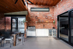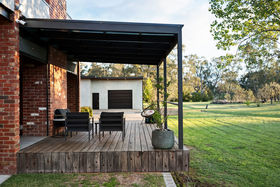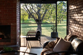 Stacking glass doors from the living area open to an outdoor kitchen, ideal for year-round alfresco dining complete with a gas BBQ, open fireplace & a sun-drenched deck overlooking serene paddock vistas.
