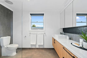The main bedroom enjoys the luxury of a walk-through robe and the upgraded ensuite featuring a walk-in shower, a long vanity unit and mirrored-fronted overhead storage.